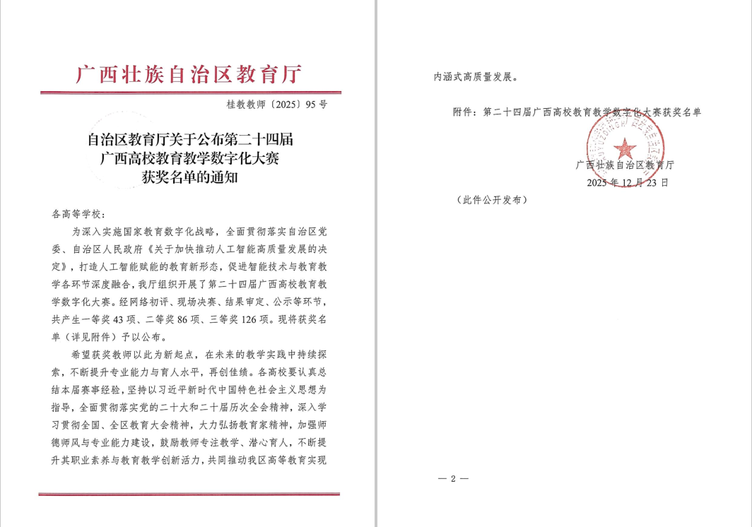 【喜报】我校教师在第二十四届广西高校教育教学数字化大赛中斩获佳绩